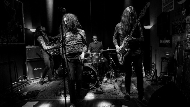 Geboren in den dunkelsten Tagen eines verregneten Sommers, braut DRUUGG (Bild unten) aus Brüssel rohen Garagenrock, durchzogen von Noise und Romantik unter dem Einfluss von Psychedelika. Das Trio, das schnell zum Quartett wurde, nahm seine ersten Tracks im berühmten KOKO-Studio bei Lüttich auf. Im März 2023, fast eineinhalb Jahre nach ihrer Gründung, begann die Band aufzutreten und ihre Fähigkeiten von Wallonien bis Brüssel, durch Nordfrankreich und die Niederlande zu verfeinern. Gitarren kreischen, Wände erbeben, Gedanken werden geprägt, und nichts wird jemals wieder so sein wie zuvor. Anfang 2024, nach der Veröffentlichung ihrer ersten EP, begibt sich DRUUGG auf eine Tournee, die sie nach Flandern und Frankreich führen wird. Nachdem sie die Botschaft des Fuzz verbreitet haben, zogen sich die Band in ihre Heimat zurück, um ihr Debütalbum aufzunehmen, das im Frühjahr 2025 über das Brüsseler Label „EXAG' Records“ erschienen ist. In dieser Welt des Chaos und der Illusion ist DRUUG das ultimative Heilmittel welches euch zur Illumination führen wird.ABZUG aus Aschaffenburg sind ein junges Kraut-Kapellen-Trio welches sich durch seinen sakral-deutschen Gesang, Sixties Fuzzgitarre und „fingerpicked Basslines“ abhebt vom 08/15 Stonersound wie ihn viele Bands spielen.